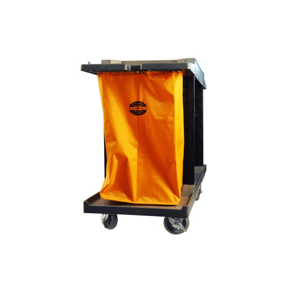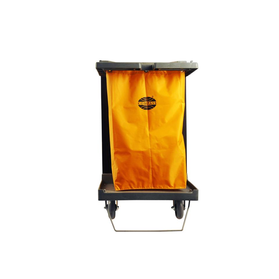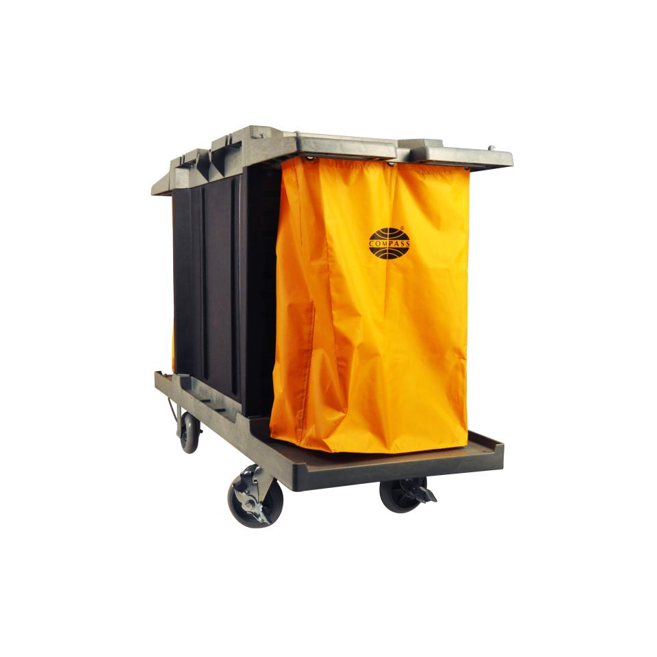 Developed for housekeeping and hospitality areas, this Compass compact open front housekeeping trolley is a convenient option for everyday use. Fitted with 2 wire shelves and 2 durable nylon 80L bags to carry soiled laundry. The Compass housekeeping trolley is ideal for restocking amenities or transporting cleaning products in hospitality areas, accommodation areas and other maintenance or cleaning conditions.