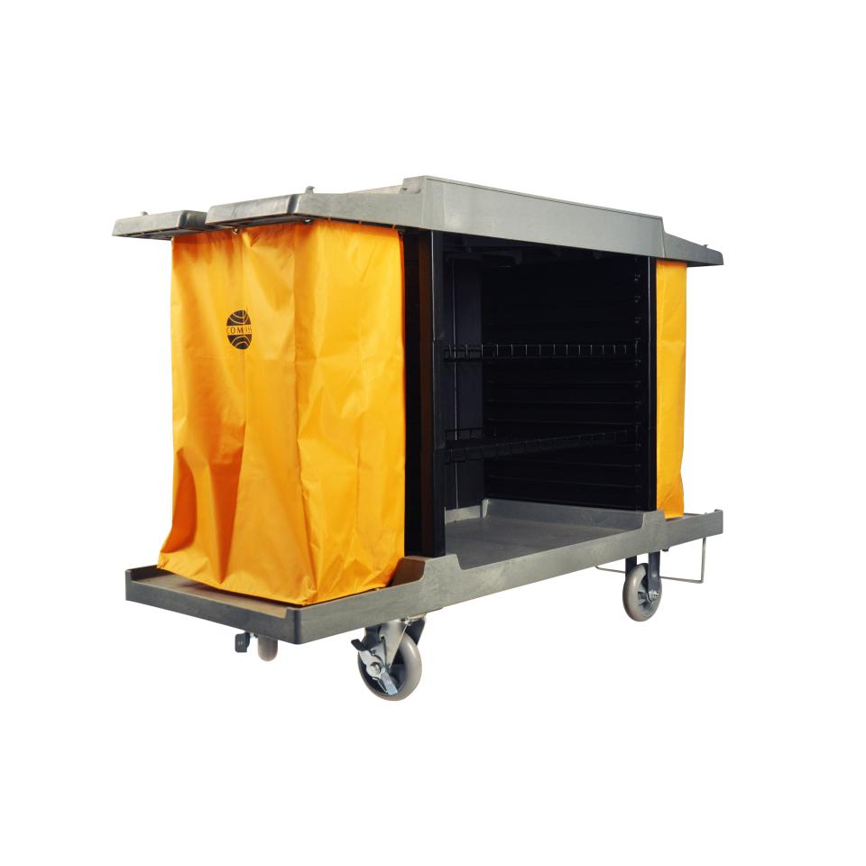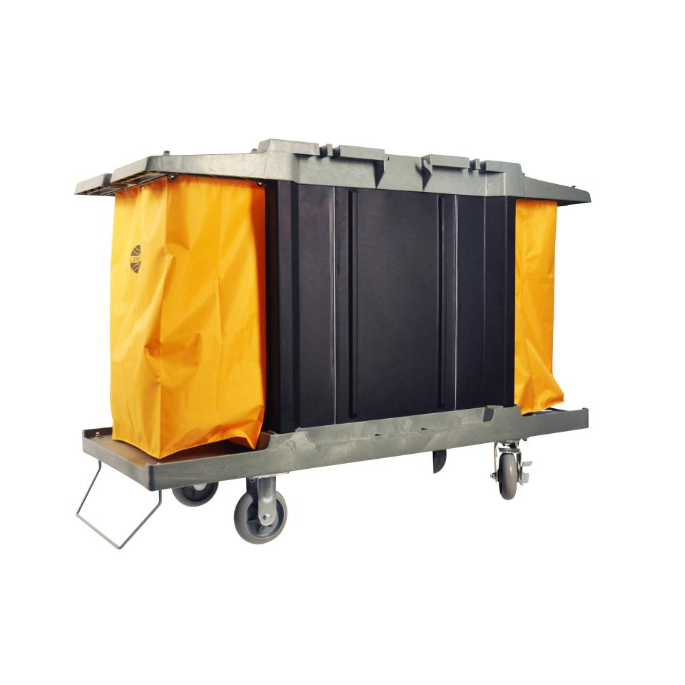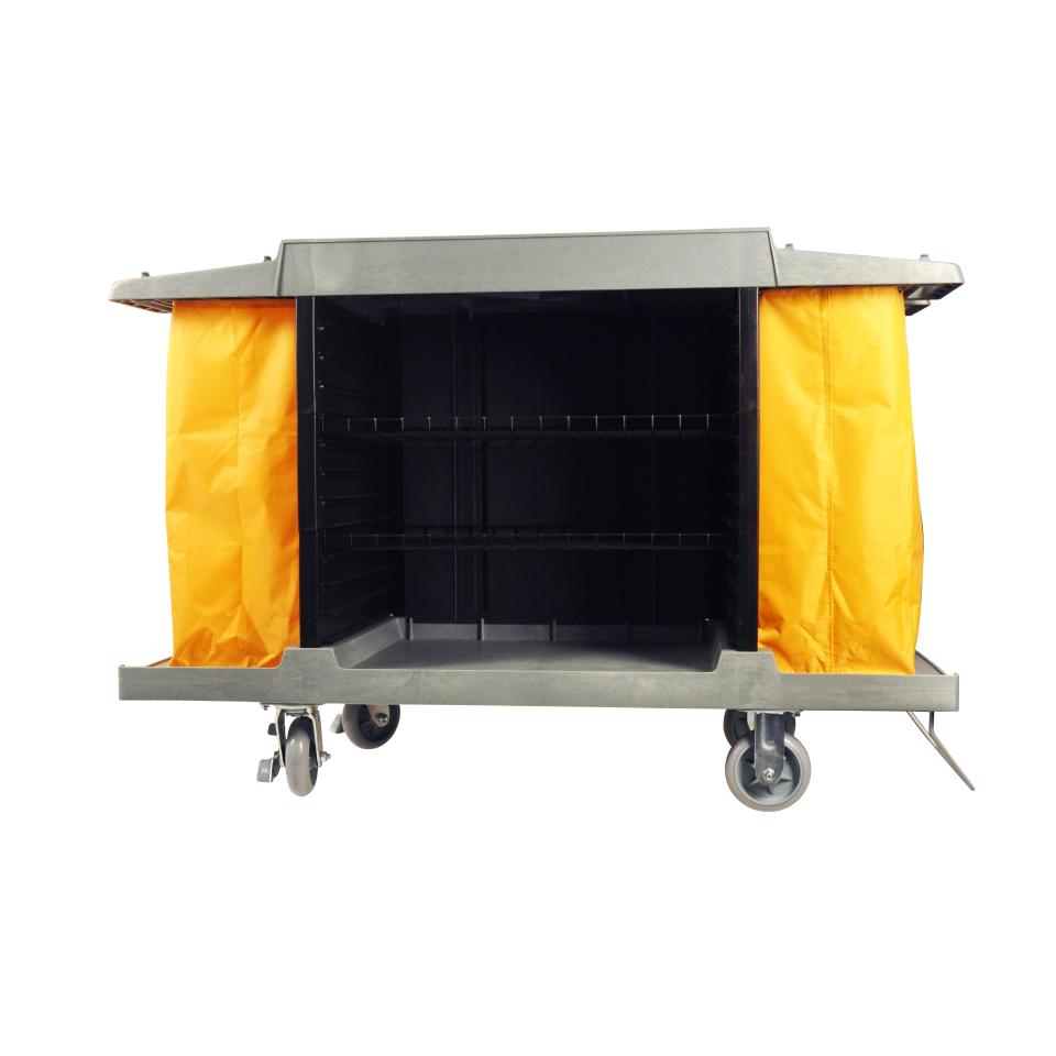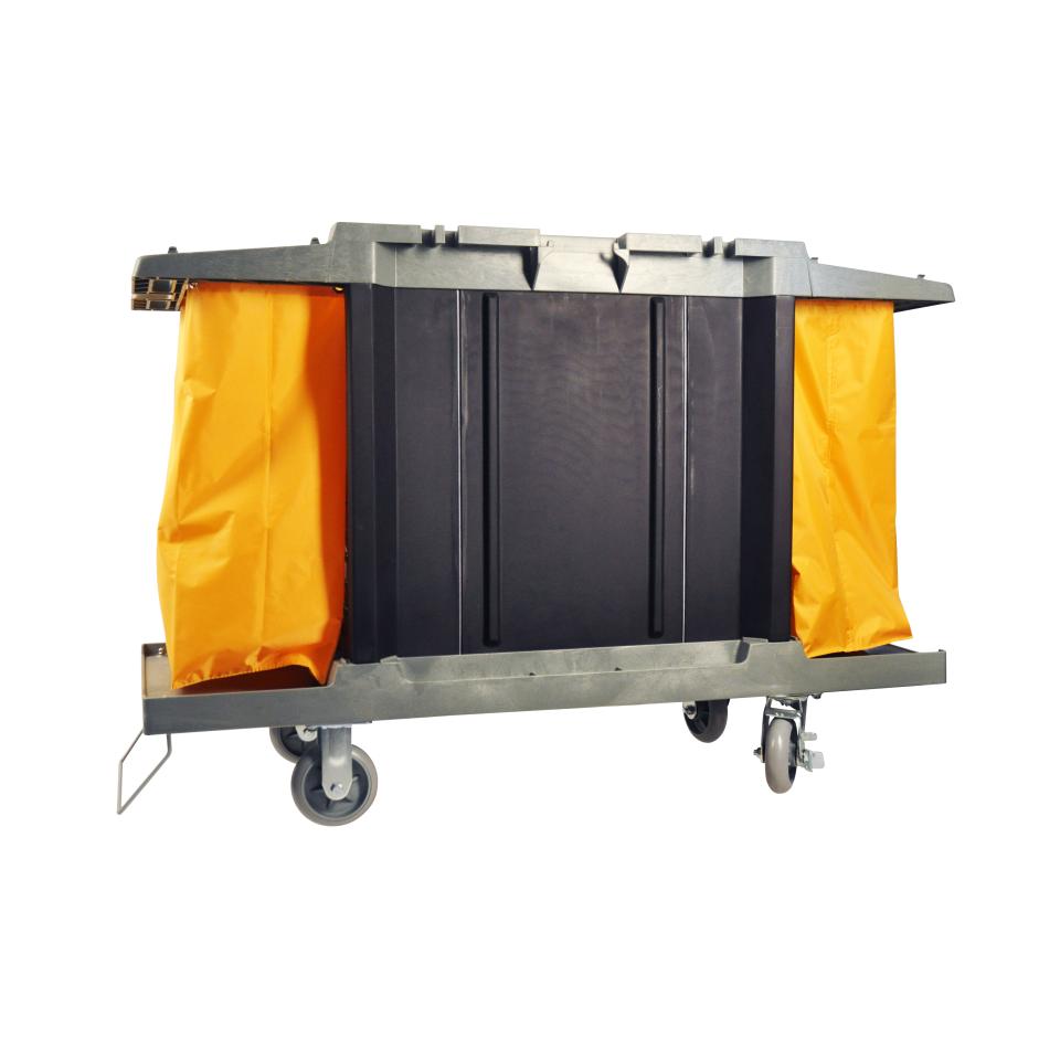 Developed for housekeeping and hospitality areas, this Compass compact open front housekeeping trolley is a convenient option for everyday use. Fitted with 2 wire shelves and 2 durable nylon 80L bags to carry soiled laundry. The Compass housekeeping trolley is ideal for restocking amenities or transporting cleaning products in hospitality areas, accommodation areas and other maintenance or cleaning conditions.
