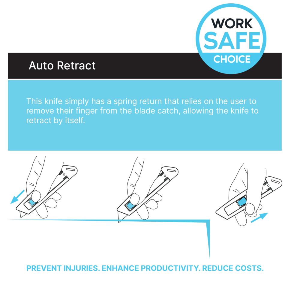 Designed for both heavy and light-duty use, the Diplomat A38 budget spring-loaded safety knife is suited for both left and right-hand use. Comfortable and reliable for your everyday cutting admin tasks, the A38 is an economical knife that features automatic blade retraction, and a compact size that can fit inside pockets - making it suitable for general use in warehouses, processing facilities, mailrooms and more.