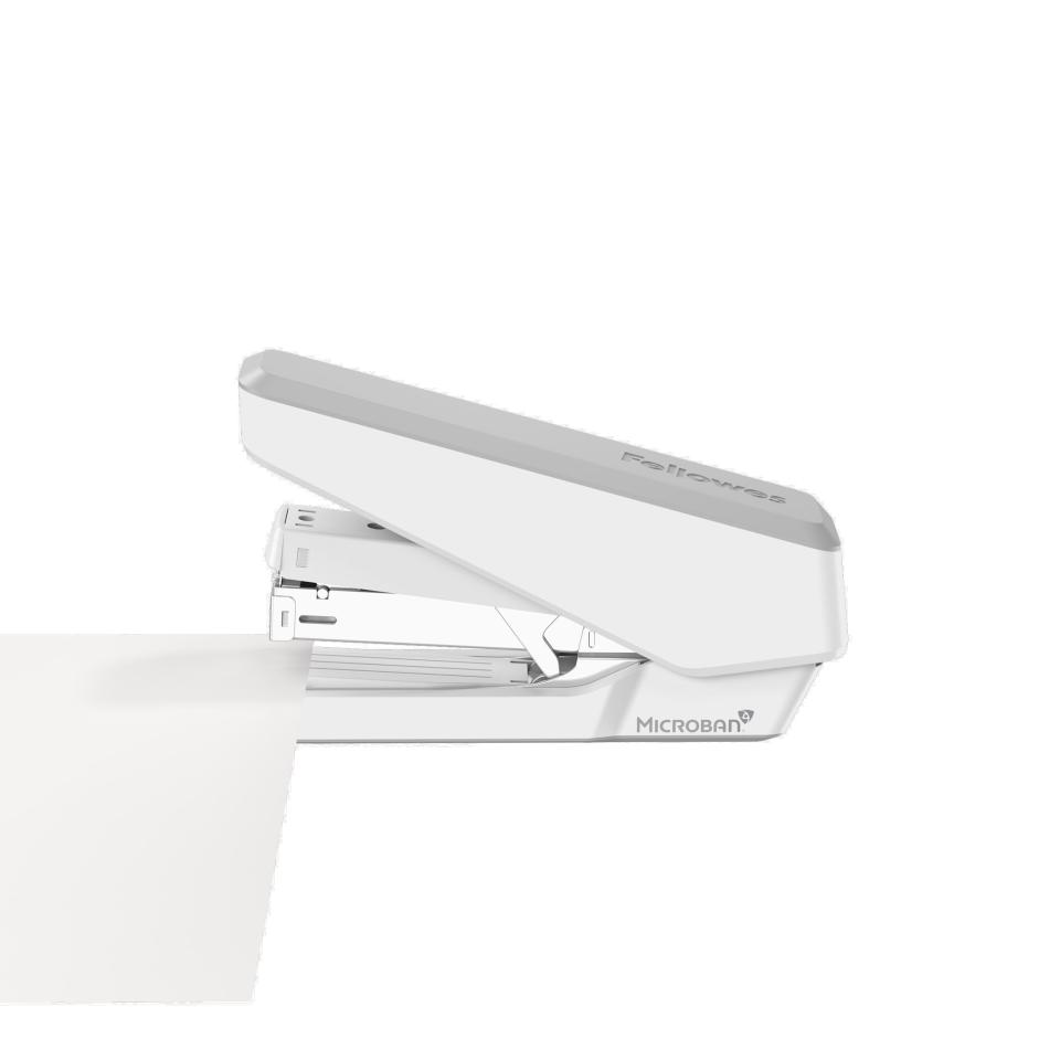 Experience effortless stapling with the Fellowes® Lx870 EasyPress Stapler. Designed for jam-free performance and capable of stapling up to 40 sheets, it's up to 2x easier than a standard stapler. With Microban® antimicrobial technology for added protection and a flat clinch finish for professional results, it's the ideal office companion.