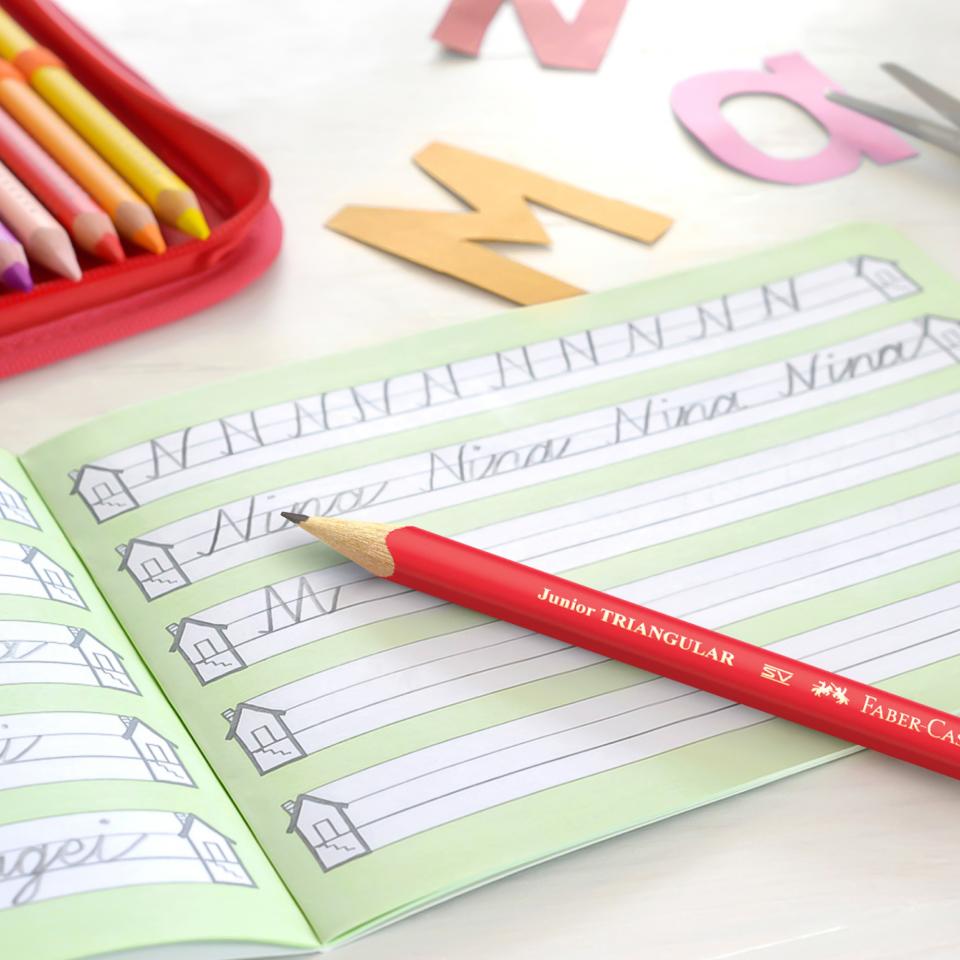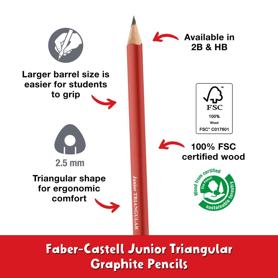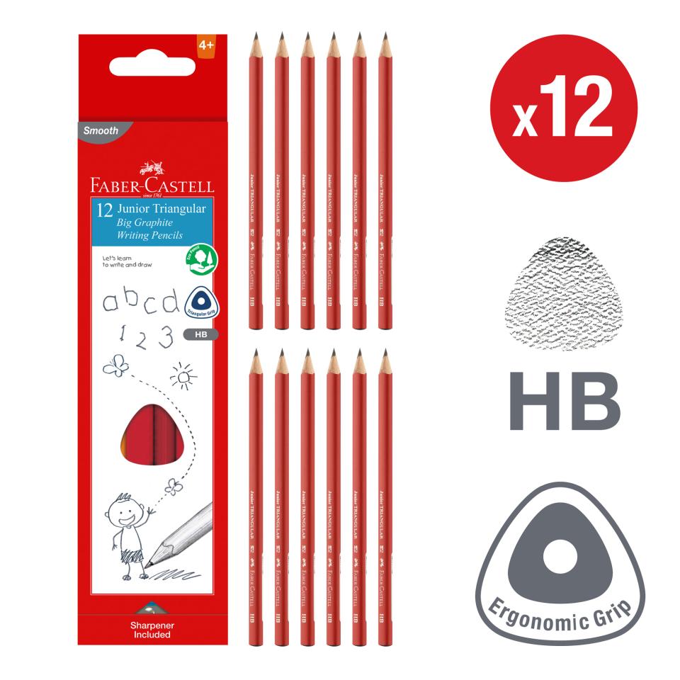 Help young students discover a love for writing and drawing with Faber-Castell Junior Triangular Graphite Pencils. Featuring a large, ergonomic triangular barrel, these pencils are specially designed for smaller hands, which need wider barrels while fine motor skills are still developing. This supportive shape helps children hold the pencil correctly and write or draw with ease and confidence.