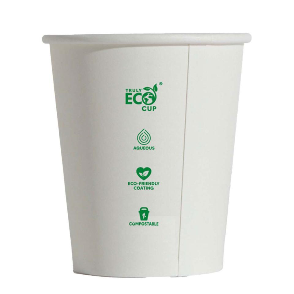 Truly Eco single wall uni 8oz coffee cup! Ideal for use in staff kitchens, function facilities, cafés and takeaways, this coffee cup has been manufactured using a water-based barrier coating that