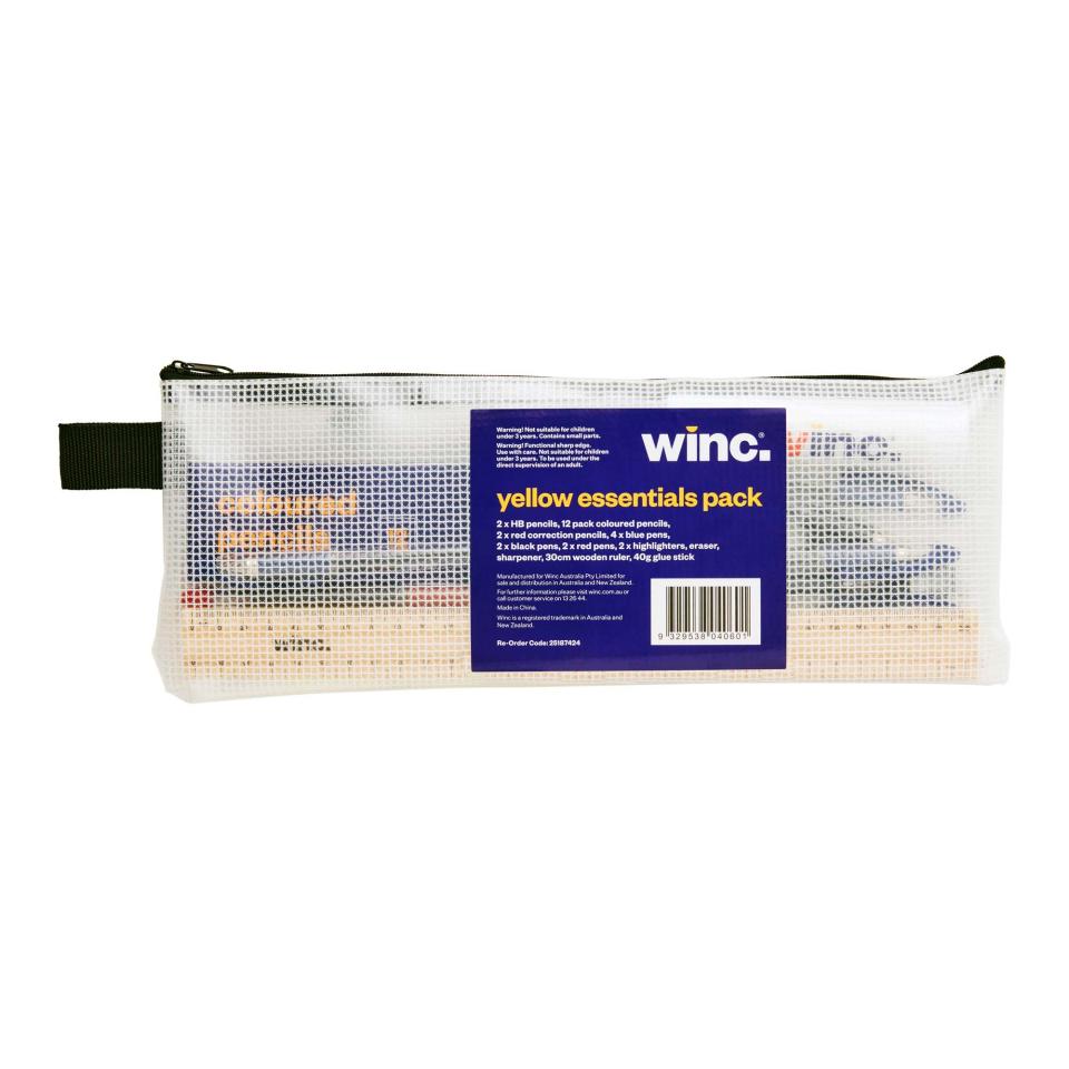 Introducing the Winc essentials pack, your one-stop shop for all your stationery needs. This pack includes all the basics for taking notes, drawing and perfecting your craft! Whether you’re a student, at school, or a professional artist, this pack contains everything you need to bring your ideas to life.pEach pack comes with 2 HB eraser tipped pencils, 12 coloured pencils, 2 red correction pencils, 4 blue pens, 2 black pens, 2 red pens, 2 highlighters, 1 eraser, 1 sharpener, 1 30cm wooden ruler and a large glue stick, all in a handy EVA mesh pencil case. The products are of the highest quality, backed by the Winc Satisfaction guarantee. So you know you’re getting nothing but the best. Don’t waste time searching for individual items at the store, take the headache out of purchasing stationery and get everything you need at once!